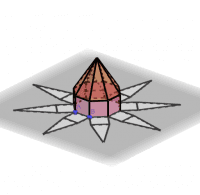 Desarollo plano de un sólido formado por un prisma y una pirámide. ( Esbozo)